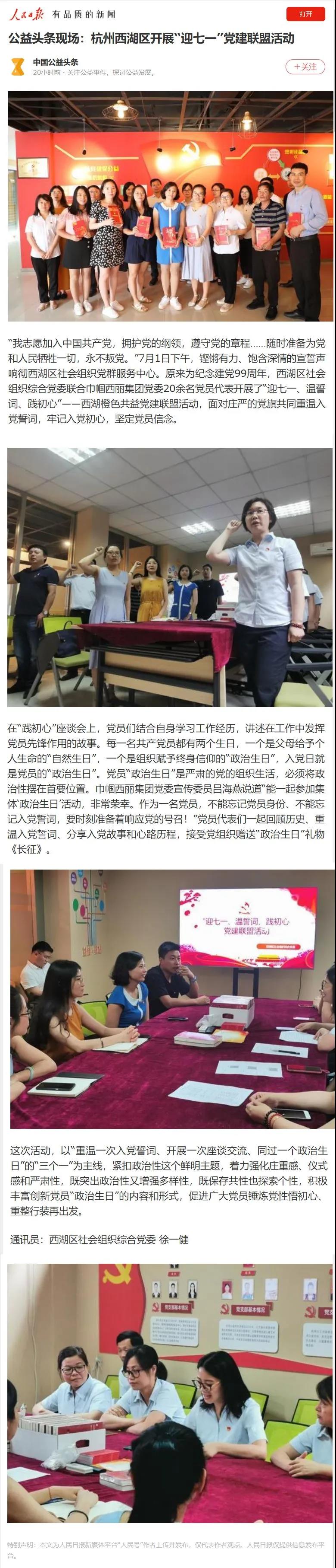 黨在心中,筑夢前行-巾幗西麗集團黨建聯(lián)盟活動受人民日報中國公益頭條欄目宣傳報導!