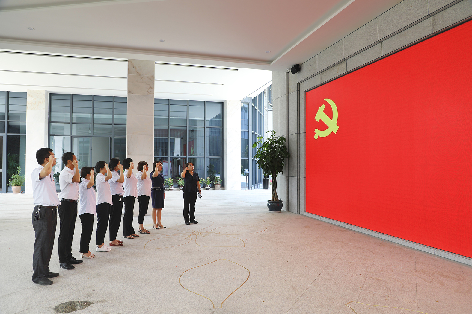 隨后,在鮮紅的黨旗下,在總經(jīng)理郭昱辰的帶領(lǐng)下,黨員代表們重溫入黨誓詞,銘記黨員的初心和使命。