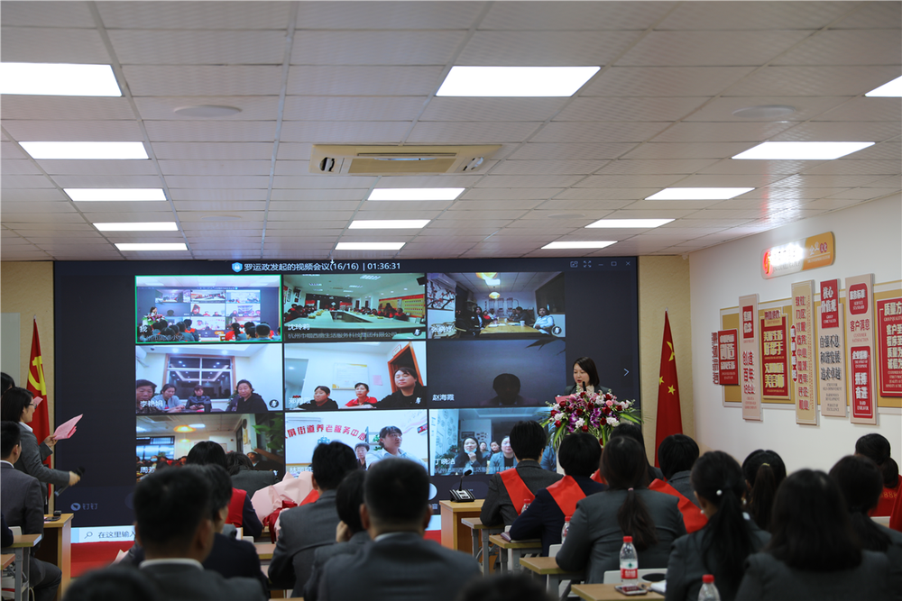 家政事業(yè)部部分經理、負責人,總部所有工作人員出席會議,14個分會場共四百多人通過視頻分會場參會。