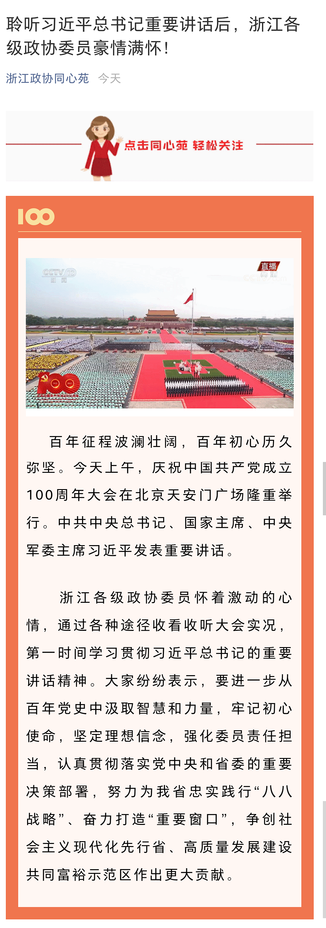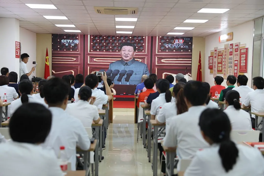上午8時,“慶祝中國共產(chǎn)黨成立100周年大會”在北京天安門廣場隆重舉行。所有參會人員聚精會神認真收看慶祝大會和習(xí)近平總書記在大會上的重要講話,習(xí)總書記講話高瞻遠矚,大家為民族驕傲和自豪的掌聲不斷響起。
