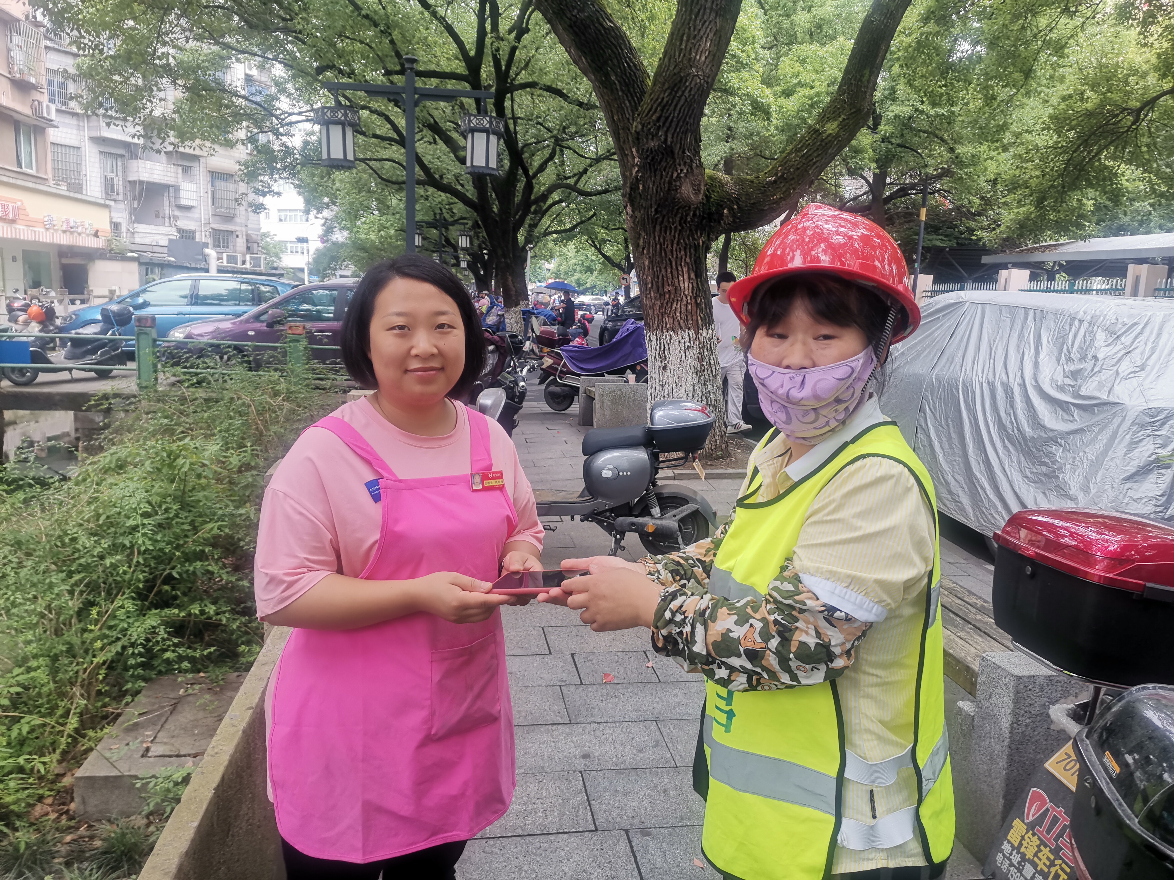 雨天路滑,街道嘈雜,巾幗西麗蕭山服務(wù)部信息采集員汪火英在蕭紹路1267號(hào)附近巡查時(shí),偶遇一位市民騎電動(dòng)車路過(guò)時(shí)不慎遺落一部手機(jī)。汪師傅看見后,在雨中嘈雜的街道環(huán)境下一直呼喊失主,沒有回應(yīng)后,她第一時(shí)間撿起手機(jī),避免手機(jī)因?yàn)檫M(jìn)水而導(dǎo)致?lián)p壞。