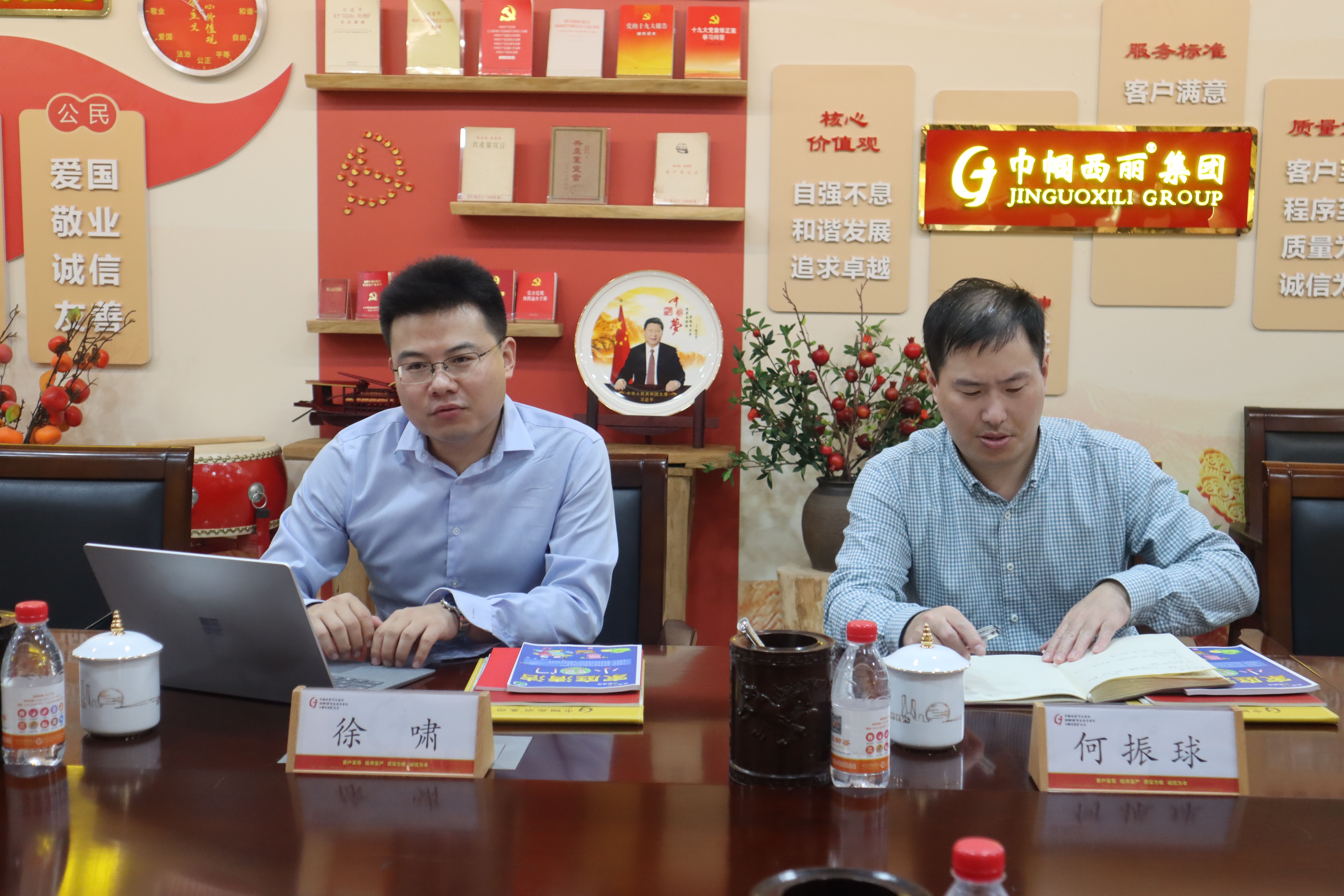 參觀結束后,雙方來到會議室進行座談會,就企業(yè)建設情況、運營狀況等方面進行了深入交流。徐嘯副書記和何振球部長對巾幗西麗集團所取得的成績給予肯定和贊揚、對企業(yè)的前景給予了厚望,望巾幗西麗繼續(xù)做優(yōu)做強。