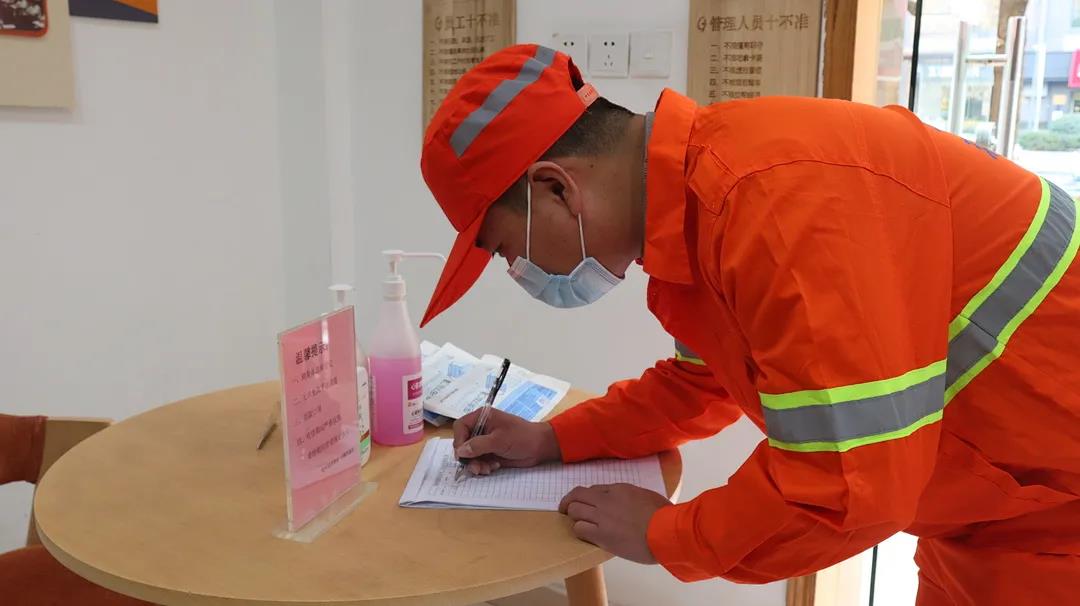 認(rèn)真排查員工旅居史,每日收取健康碼、行程碼、同行檢測(cè),做好疫情監(jiān)測(cè)排查工作,確保防控措施全面落實(shí)到位。辦公場(chǎng)所、城管驛站等區(qū)域,所有人員都需經(jīng)過(guò)掃碼、測(cè)溫、登記等一系列防疫措施后才能進(jìn)入。
