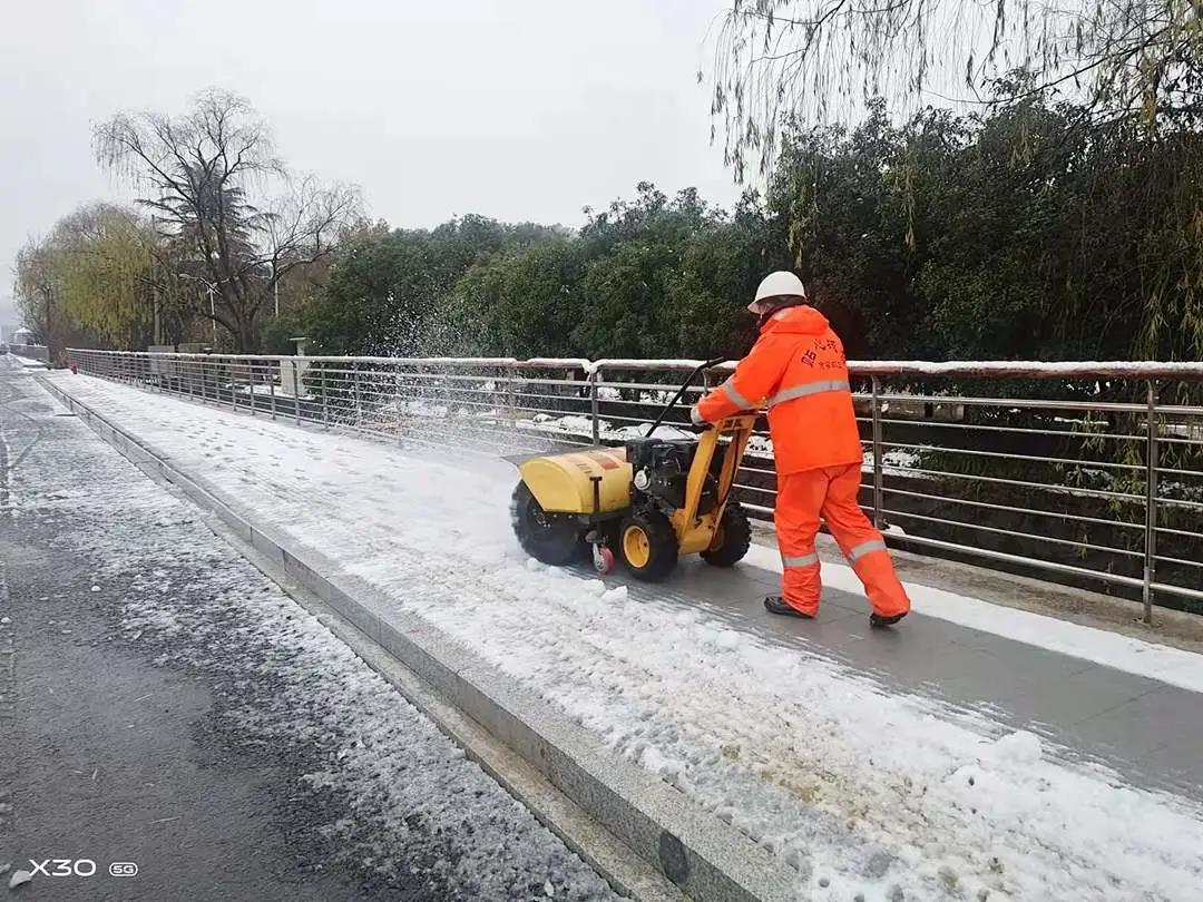 面對(duì)路面積雪,巾幗西麗集團(tuán)秉承安全第一、以人為本、保障暢通的原則,充分發(fā)揮人機(jī)結(jié)合作業(yè)優(yōu)勢,組織掃雪突擊隊(duì),對(duì)公交站臺(tái)、地鐵口、農(nóng)貿(mào)市場等區(qū)域進(jìn)行人工掃雪除冰,消除安全隱患。同時(shí),利用融雪劑撒布車,對(duì)高架、立交、橋梁等播撒融雪劑、清除積雪。利用掃雪滾等機(jī)械設(shè)備,清理主次干道、慢車道及人行道區(qū)域積雪,保障市民出行安全。