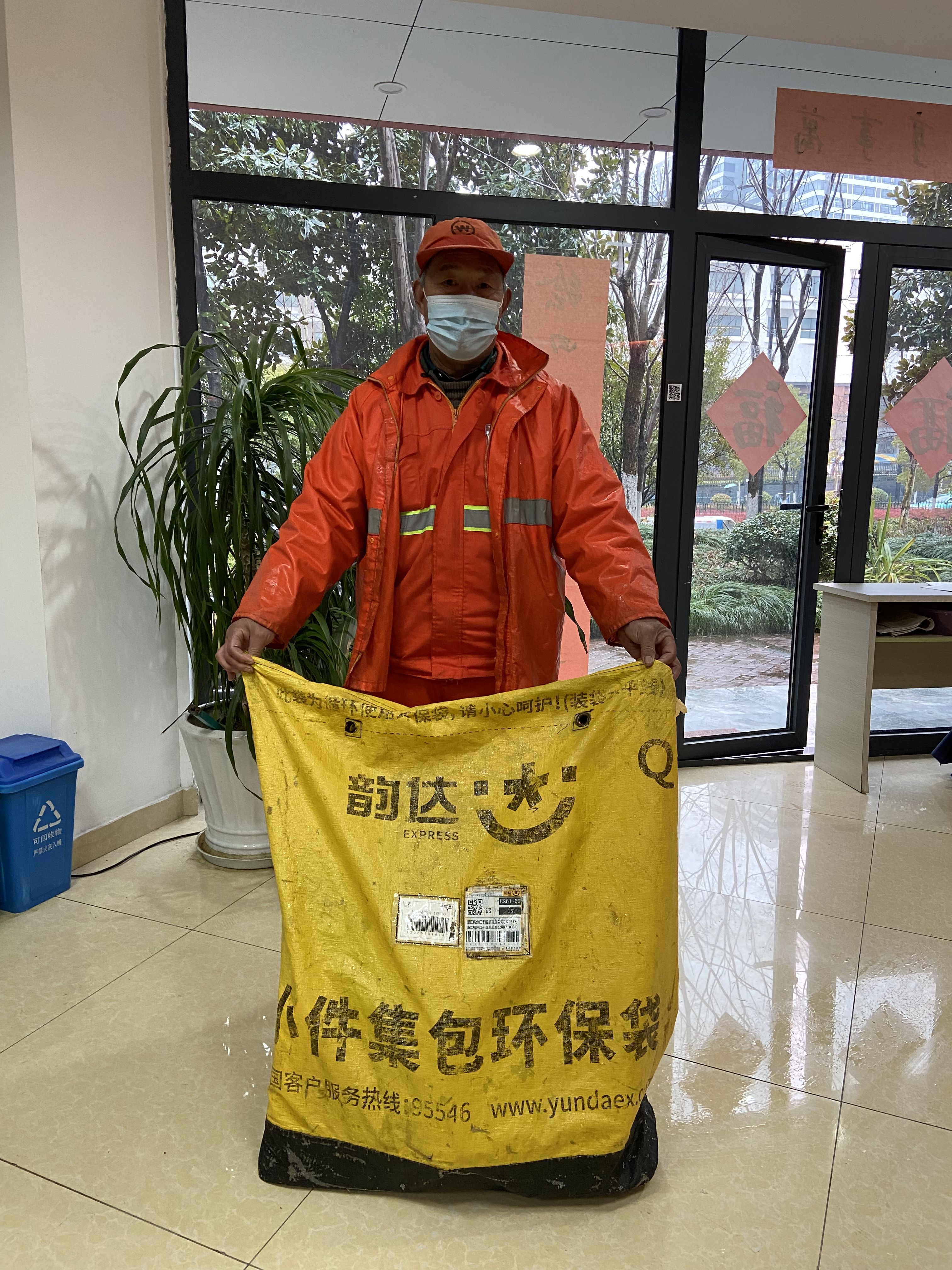 隨師傅在作業(yè)時(shí)撿到一個(gè)包裹大件,內(nèi)有十多個(gè)待送的快件,且價(jià)值不菲。隨師父馬上聯(lián)系管理員,并在丟件的三新路口(太平門直街)等待失主來(lái)尋。