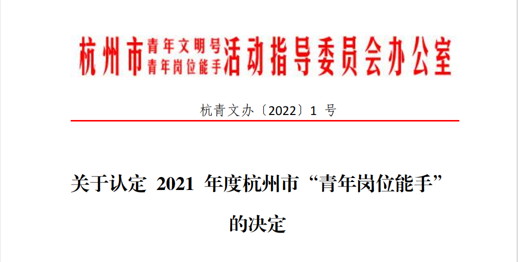 據悉,2021年,杭州市各級團組織圍繞“青年職業(yè)導航計劃”,廣泛開展青工技能比武活動,為表彰杭州市在業(yè)務技能方面有特長、有創(chuàng)新,在工作崗位上成績突出、能較好地發(fā)揮模范帶頭作用的優(yōu)秀青年職工,特設置此項榮譽,充分體現獲獎職工在崗位技能上的先進性。