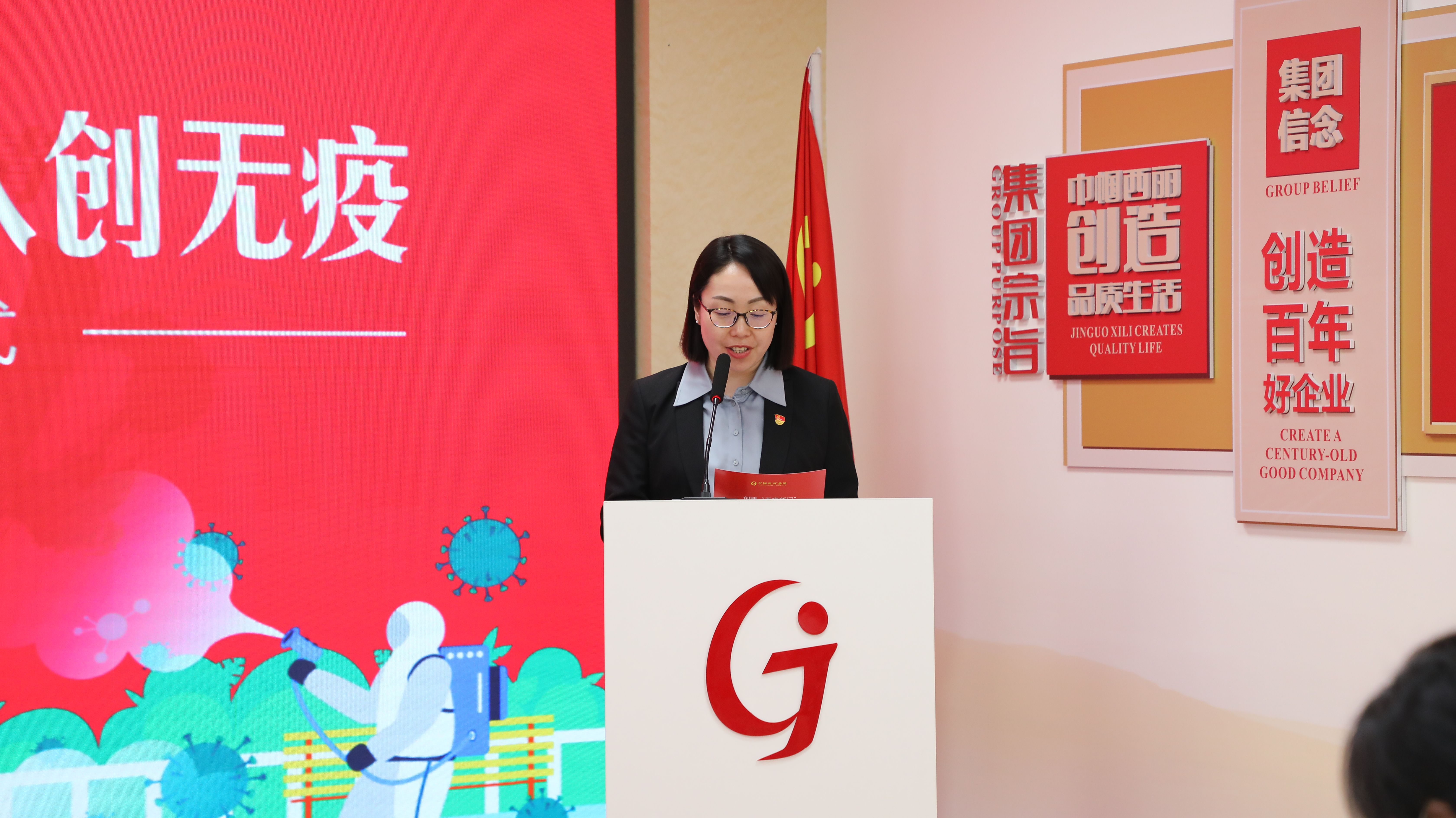 副總經(jīng)理李素梅宣讀了創(chuàng)建“無疫部門”倡議書,號召廣大黨員要帶頭落實疫情防控要求,倡議所有同事積極行動起來,積極參與“無疫部門”創(chuàng)建活動,實現(xiàn)最小單元防控,做到“守好自身關(guān)、共護你我他”。