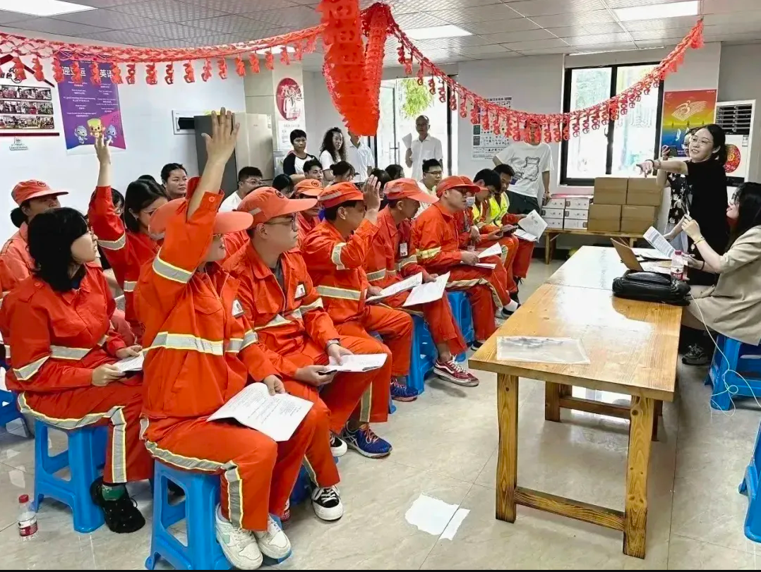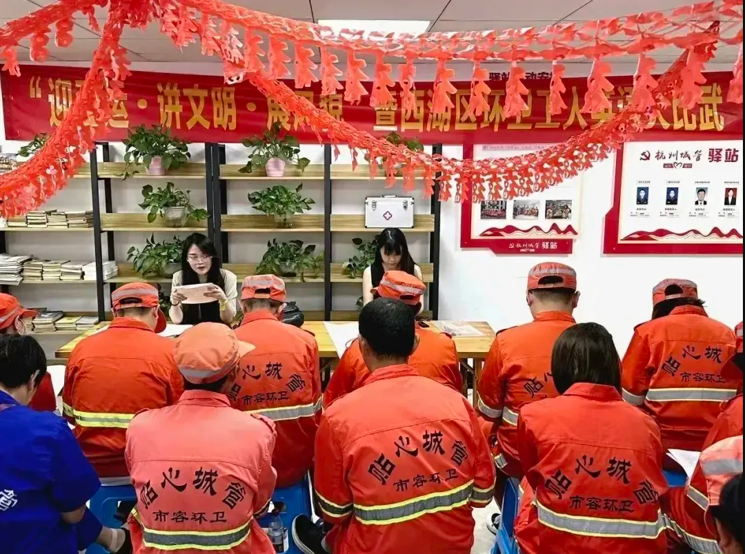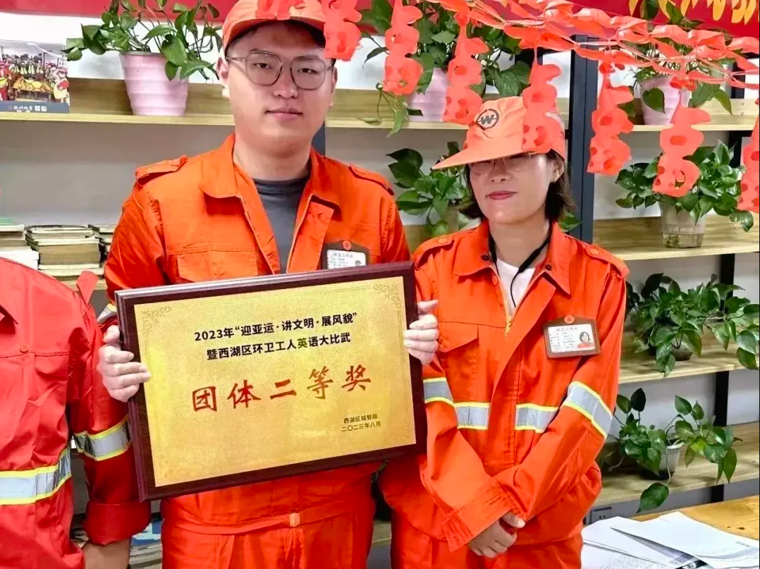 8月24日上午,由杭州市環(huán)衛(wèi)固廢中心指導(dǎo),西湖區(qū)城管局主辦的“迎亞運(yùn)·講文明·展風(fēng)貌暨西湖區(qū)環(huán)衛(wèi)工人英語大比武”活動在杭州城管驛站慧仁家園南區(qū)黨群服務(wù)站舉辦,巾幗西麗集團(tuán)派出2名環(huán)衛(wèi)代表參賽,進(jìn)行精彩比拼,為集團(tuán)贏得了“團(tuán)體二等獎”。